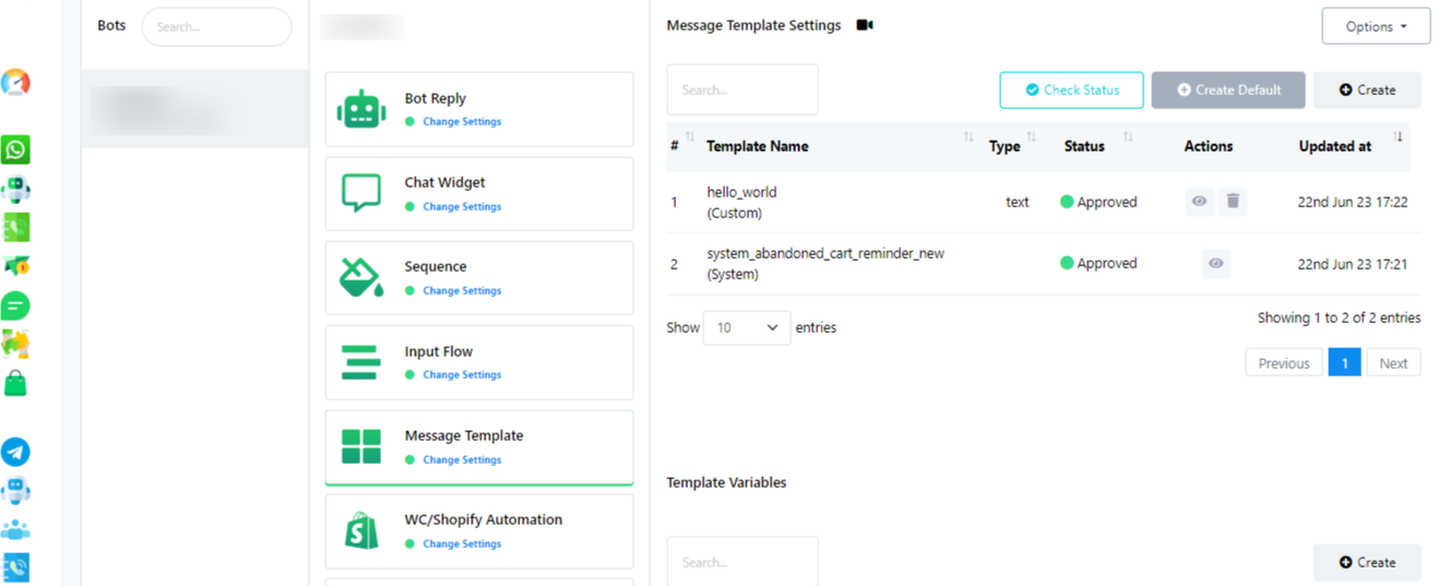 - Go to Wooza App Dashboard and navigate to the Bot manager section.